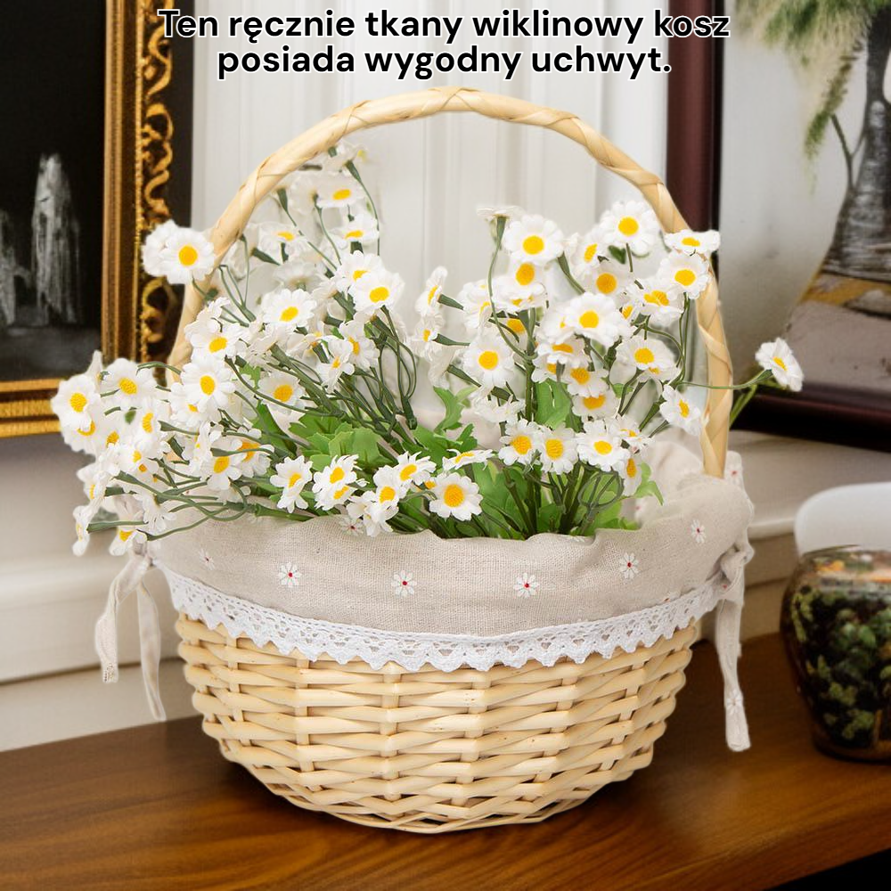 ● Ręcznie wykonany kosz wiklinowy z wygodną rączką to elegancka i ekologiczna oprawa na prezenty, która podkreśli wyjątkowy charakter każdej okazji.